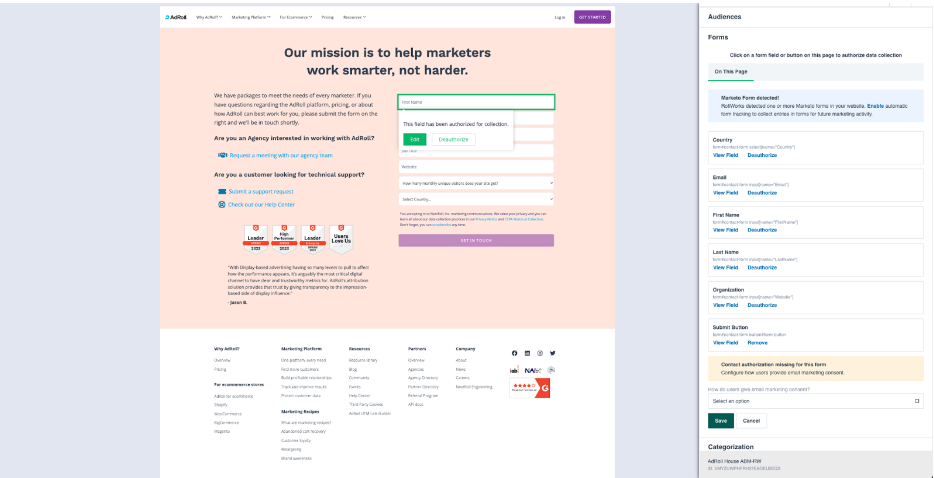 “A lot of our customers rely on third-party sources, like Hubspot or Marketo, to put forms on their site and aggregate that data,” said Michael. “But through the Forms tab on the Pixel Assistant, customers can now collect this CRM data directly through the platform.”